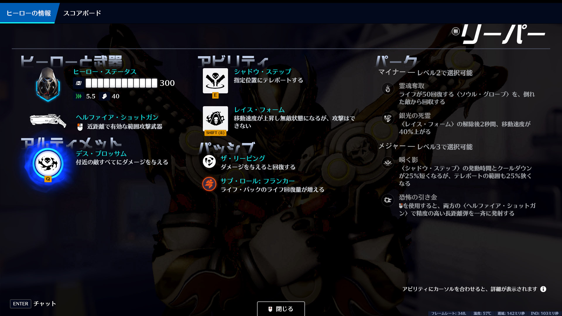 | 強み | タンクへの高火力が強力。シャドウステップで奇襲も可能。レイスフォームで緊急回避ができる |