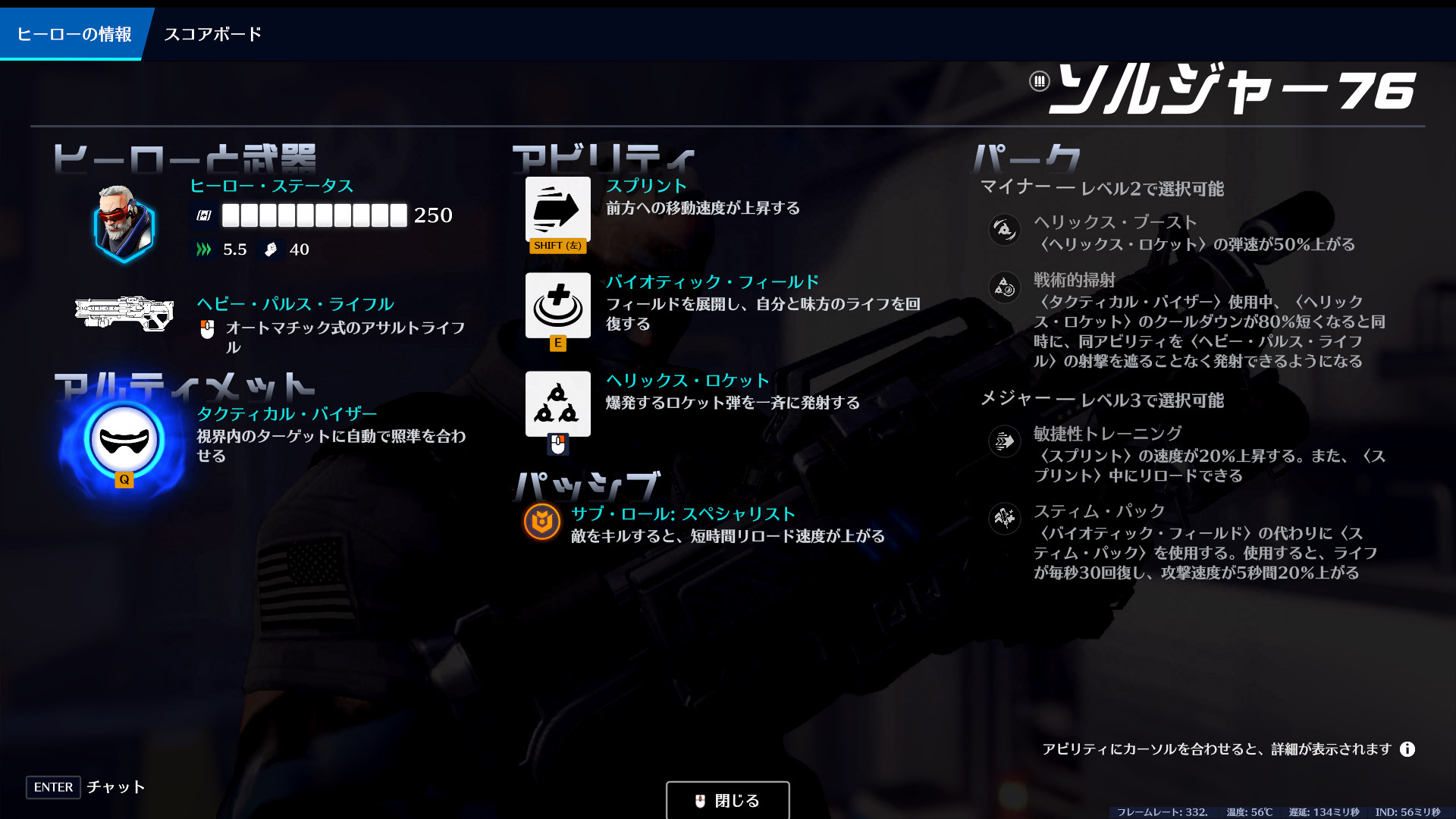 アサルトライフルで戦う、最も「普通のFPS」に近い動き方ができるヒーローです。FPS経験者ならすぐに感覚が掴めます。