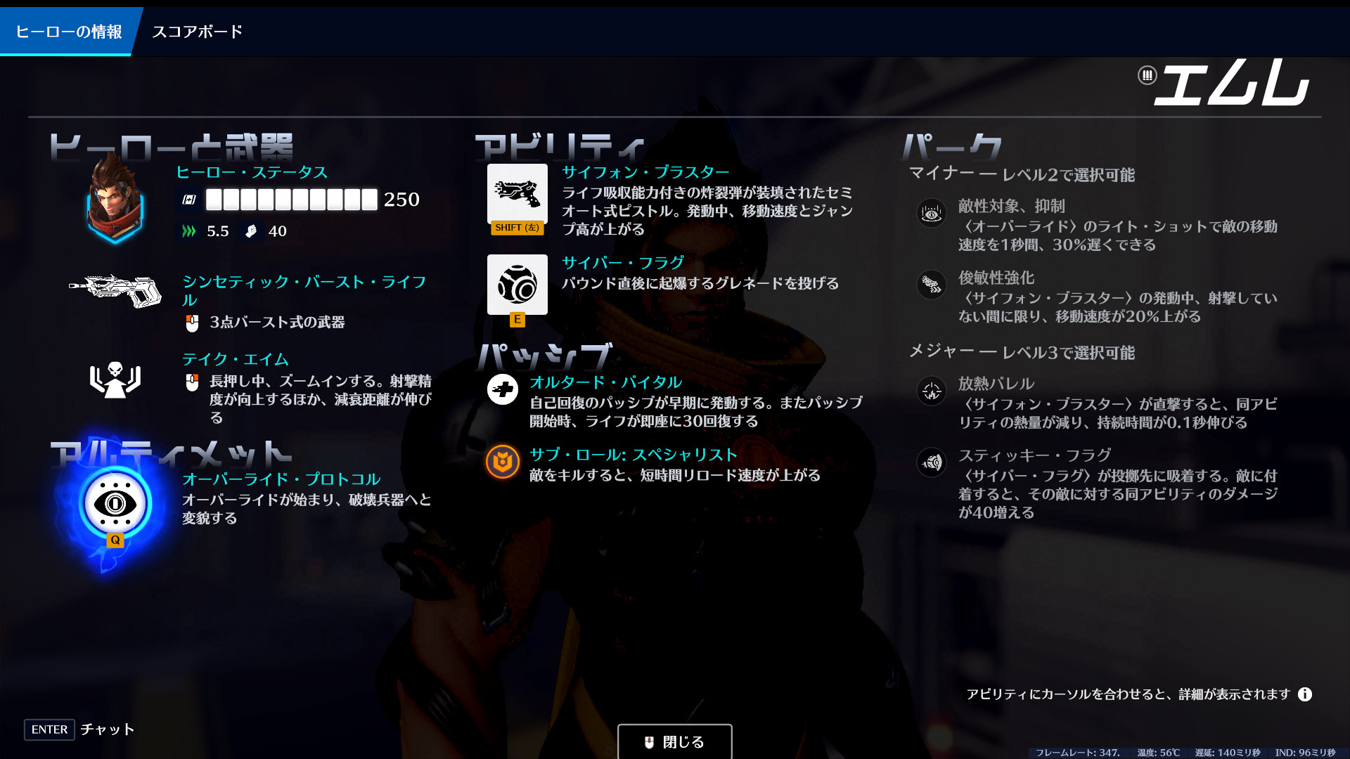 | 注意点 | 回復量がリソース依存のため消極的に動くと回復が弱い。味方の側で積極的に動くことが前提のヒーロー |