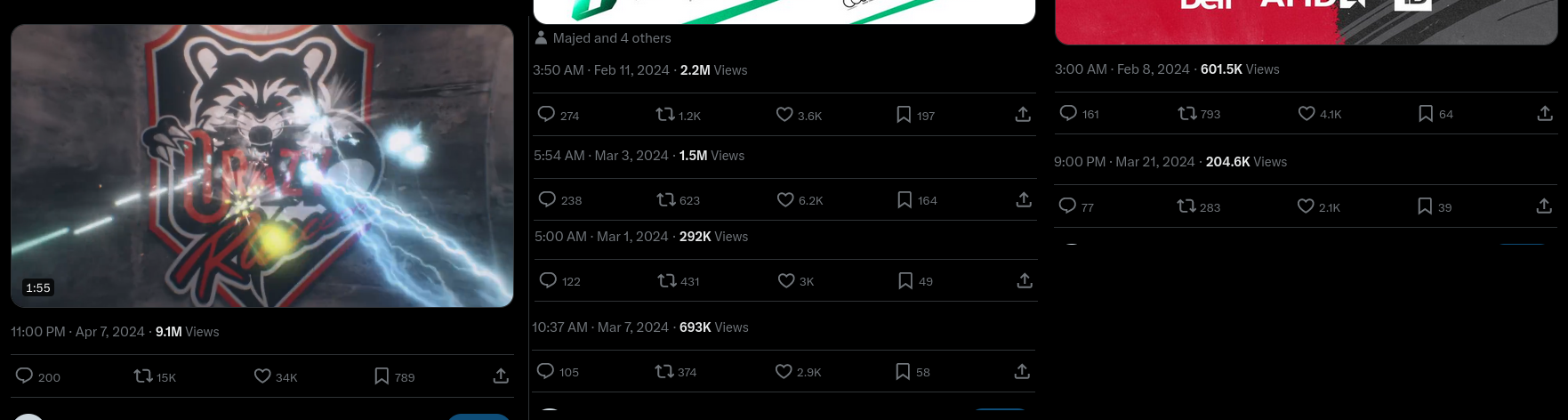 Crazy Racoon's announcement tweet's numbers compared to every other notable org.