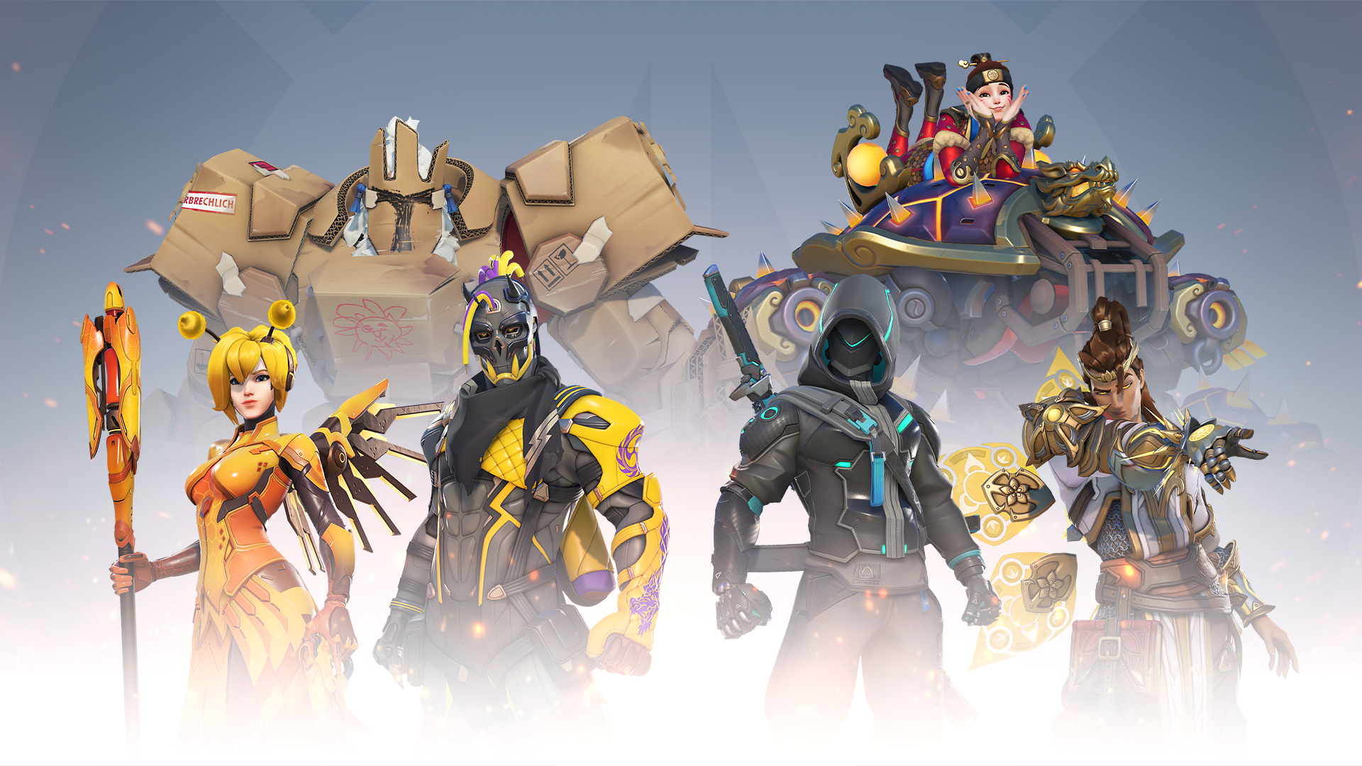 アンロック可能なスキンはラインハルト用「段ボール」、D.Va用「亀甲船」、ハンゾー用「サイバー・ドラゴン」、ゲンジ用「ストリート・ランナー」、マーシー用「ハニービー」、ライフウィーバー用「僧侶」の6種類。