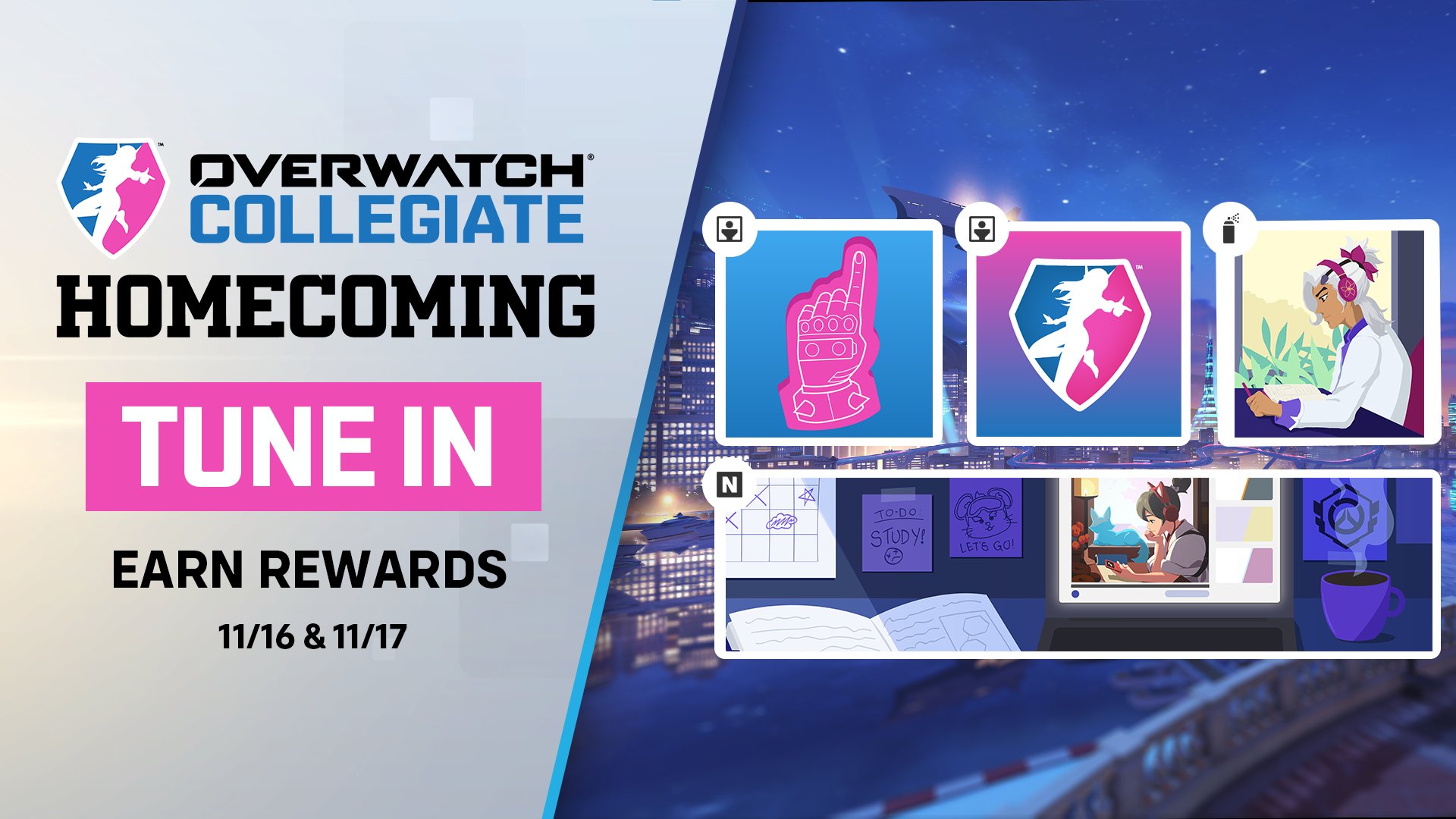 Overwatch Collegiate Homecoming Playoffsの開催に合わせた本イベントでは下記のアイテムを入手できます。