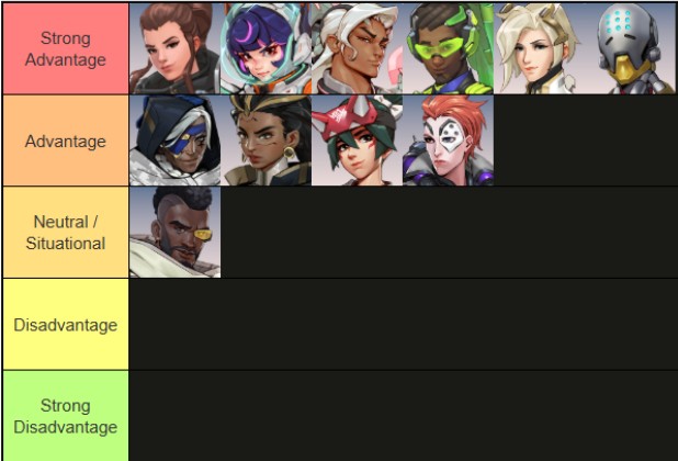 ・モイラ:オートエイム持ちだが低い総ダメージ、フェードのクールダウンが短い中立/状況的: