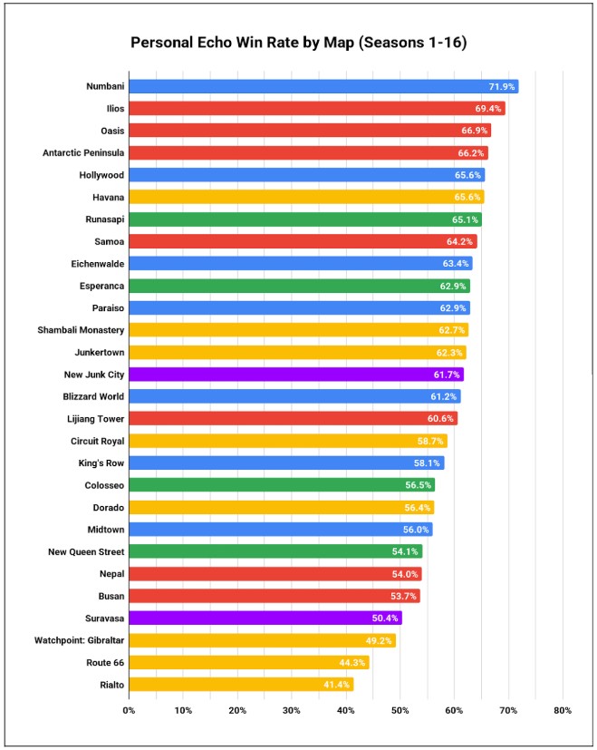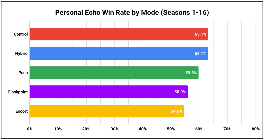 Zintel氏は854試合のデータを分析し、エコーのマップ・モード別パフォーマンスを統計的に検証しました。